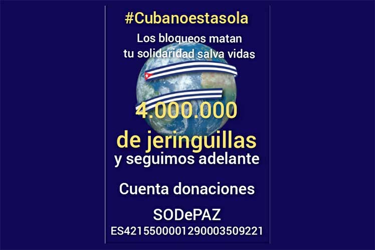 SODEPAZ (Solidarity for Development and Peace) told Prensa Latina that the money collected has already allowed the purchase of four million syringes and their shipment to the Caribbean nation.