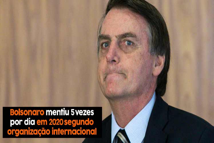 Brasilia, Jul 30 (Prensa Latina) The President of Brazil Jair Bolsonaro issued 1,682 false or misleading statements in 2020 (about five per day), according to a report by the non-governmental organization Article 19 published on its own official website.