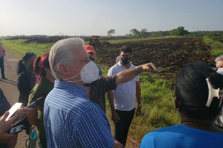 According to the Presidency’s Twitter account, the head of State made a first stop in areas where weeds used to prevail, and now banana and corn plantations stand out. The tour takes place in the context of the implementation of a package of 106 measures to strengthen the agricultural sector and advance in the transformation of agriculture.