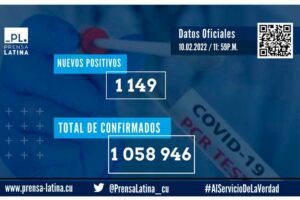 Havana, Feb 11 (Prensa Latina) The Cuban Ministry of Public Health (MINSAP) on Friday reported 1,149 new Covid-19 cases and six deaths due to complications related to the disease in the last 24 hours.