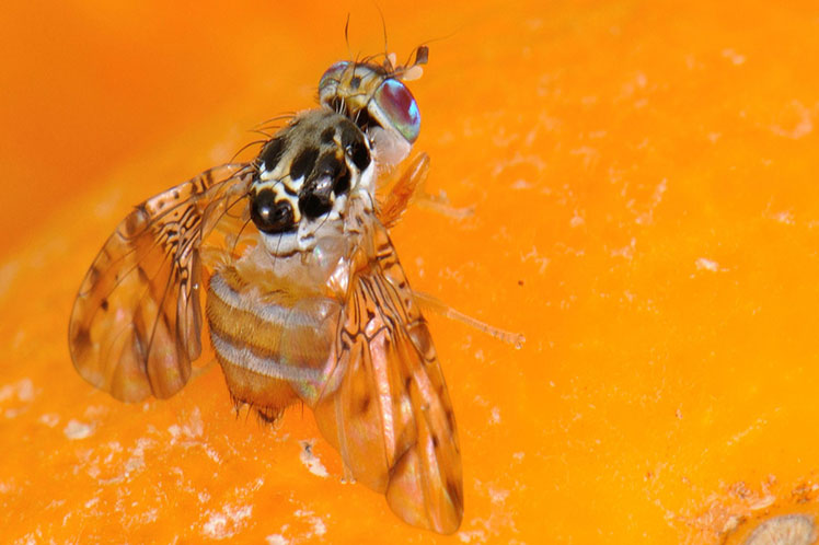 Fruit flies (Ceratitis capitata) are considered among the world’s most devastating insect pests. They lay their eggs in fruits and vegetables, and when they hatch, the larvae feed on the pulp. Keeping orchards fly free is a prerequisite for exports to many countries.