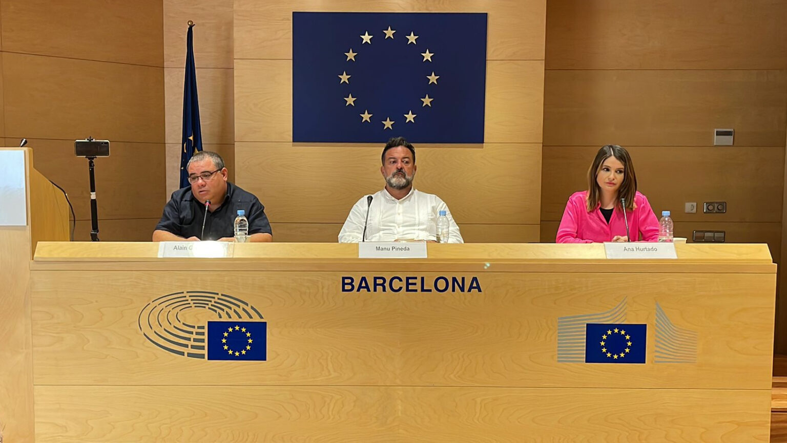 The MEP Manu Pineda, documentary filmmaker and social communicator, Ana Hurtado, and the Consul General of Cuba in Barcelona, Alain González, offered their points of view at the meeting held at the headquarters of the European Parliament in the capital of Catalonia, Spain.