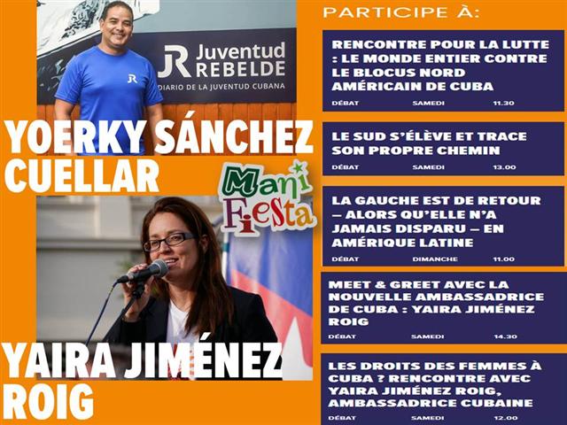 For her part, Yaira Jimenez will be interviewed by president of the solidarity association Cubanismo.be Isabelle Vanbrabant, and will also intervene in meetings on the rights of women in Cuba and the actions of the peoples of the South in pursuit of their sovereignty.