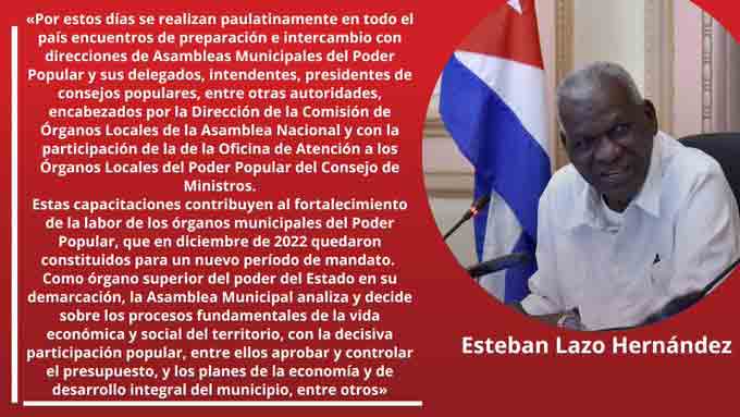 These meetings have contributed to strengthening the work of the municipal bodies of People’s Power, which were constituted for a new term of office in 2022, Lazo tweeted.