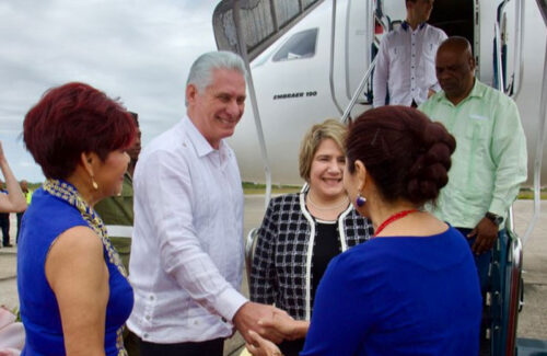 After a brief ceremony at the Philip SW Goldson International Airport, the Cuban president and his delegation went to Government House to hold brief talks and sign agreements, according to the president’s program.