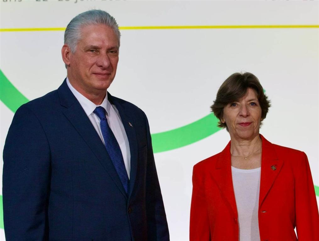 The Cuban president was received by French Minister of Europe and Foreign Affairs, Catherine Colonna, at the Palais Brongniart, a few minutes before the opening of the two-day event in which about 100 heads of State and Government are participating as guests.