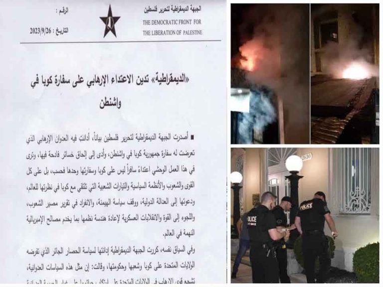 The Democratic Front for the Liberation of Palestine issued a statement in which it described the attack on the Cuban diplomatic mission as flagrant, brutal and terrorist.