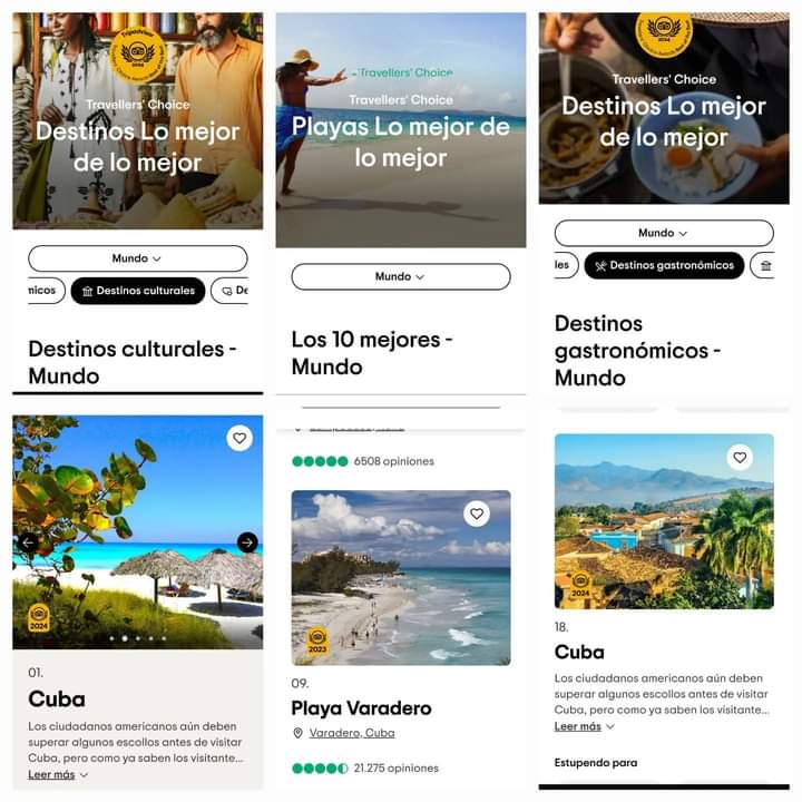 The Spanish digital publication Buenviajeacuba, pointed out on its Friday edition that Cuba had received the Best of the Best award on Tripadvisor, after it revealed the selection of winning sites of the Travelers’ Choice Awards Best of the Best 2024, and Cuba appears in several categories.