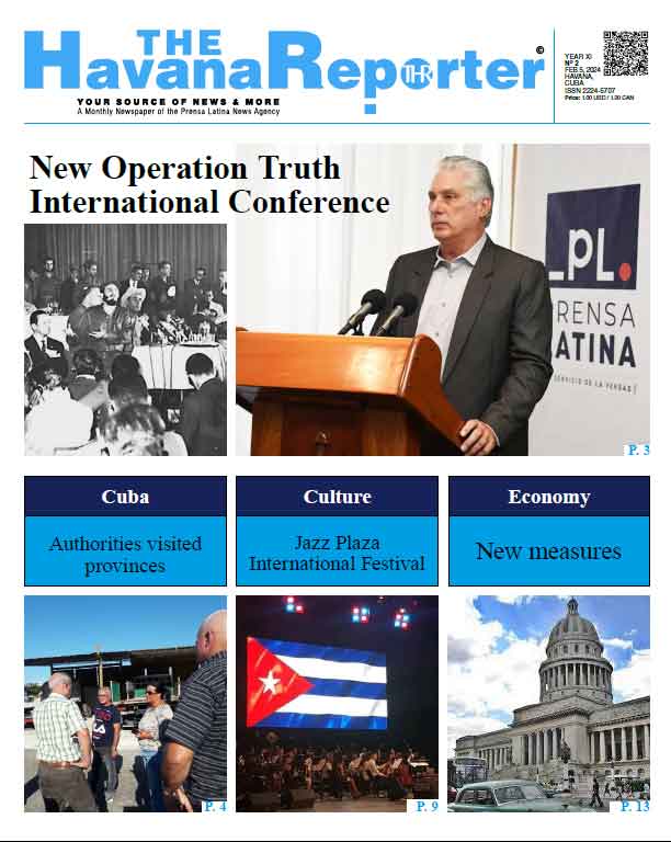 The February edition of The Havana Reporter features the holding of the International New Operation Truth Forum, sponsored by the Prensa Latina Latin American News Agency as a tribute to the 65th anniversary of the summon historical leader Fidel Castro made to hold a press conference to announce the truths of the Cuban Revolution.