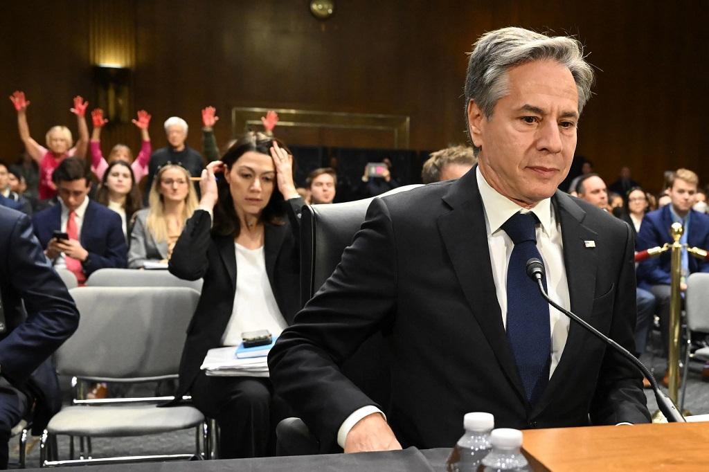 Protesters have become increasingly common at hearings involving Blinken, who is seen as the face of Biden administration’s response to the conflict in Gaza.
