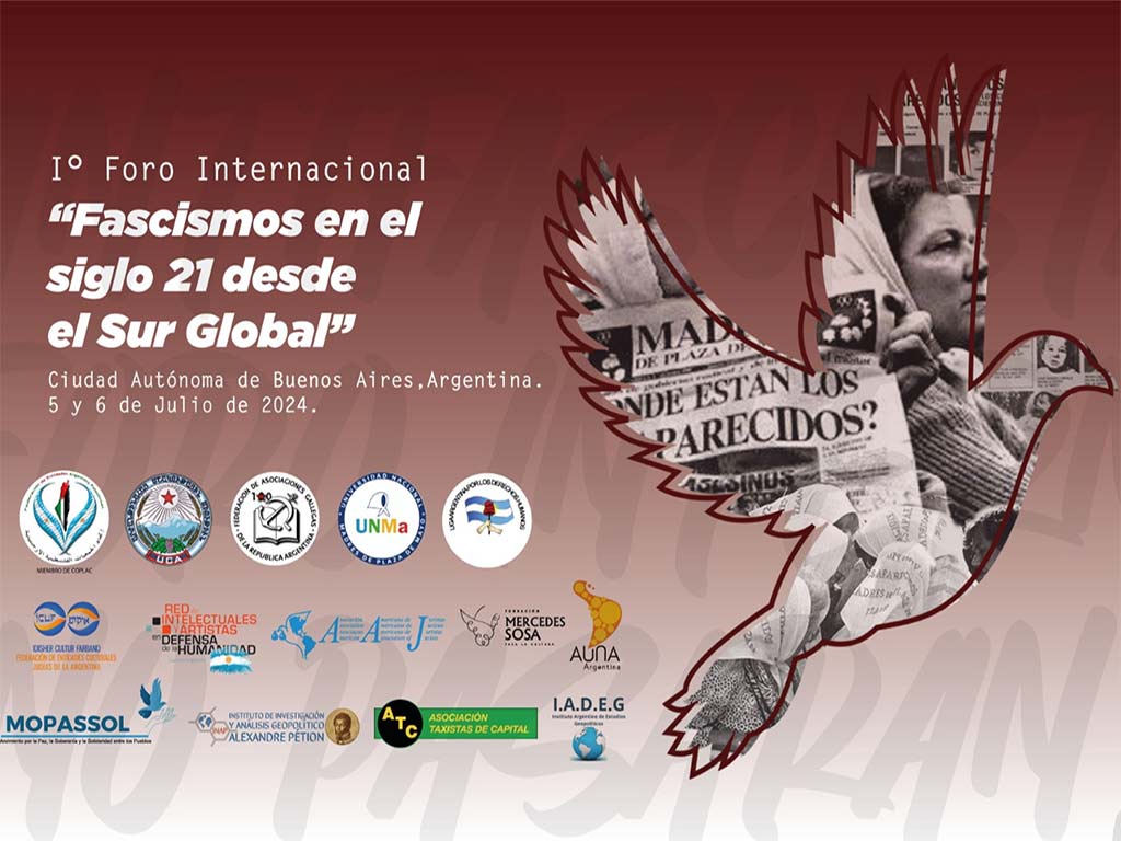 Among the institutions that will be represented are the Movement for Peace, Sovereignty and Solidarity among Peoples, the League for Human Rights, the American Association of Jurists, the Federation of Argentine Palestinian Entities, the Association for the Unity of Our America and the Network of Artists and Intellectuals in Defense of Humanity.