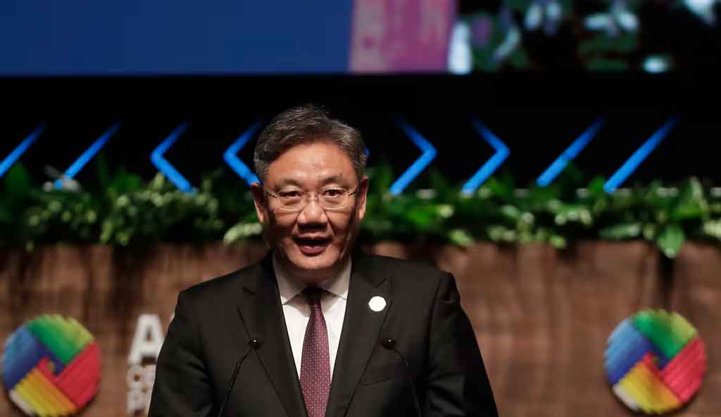 The Chinese Minister of Commerce, Wang Wentao, read the message before leaders of 21 countries.