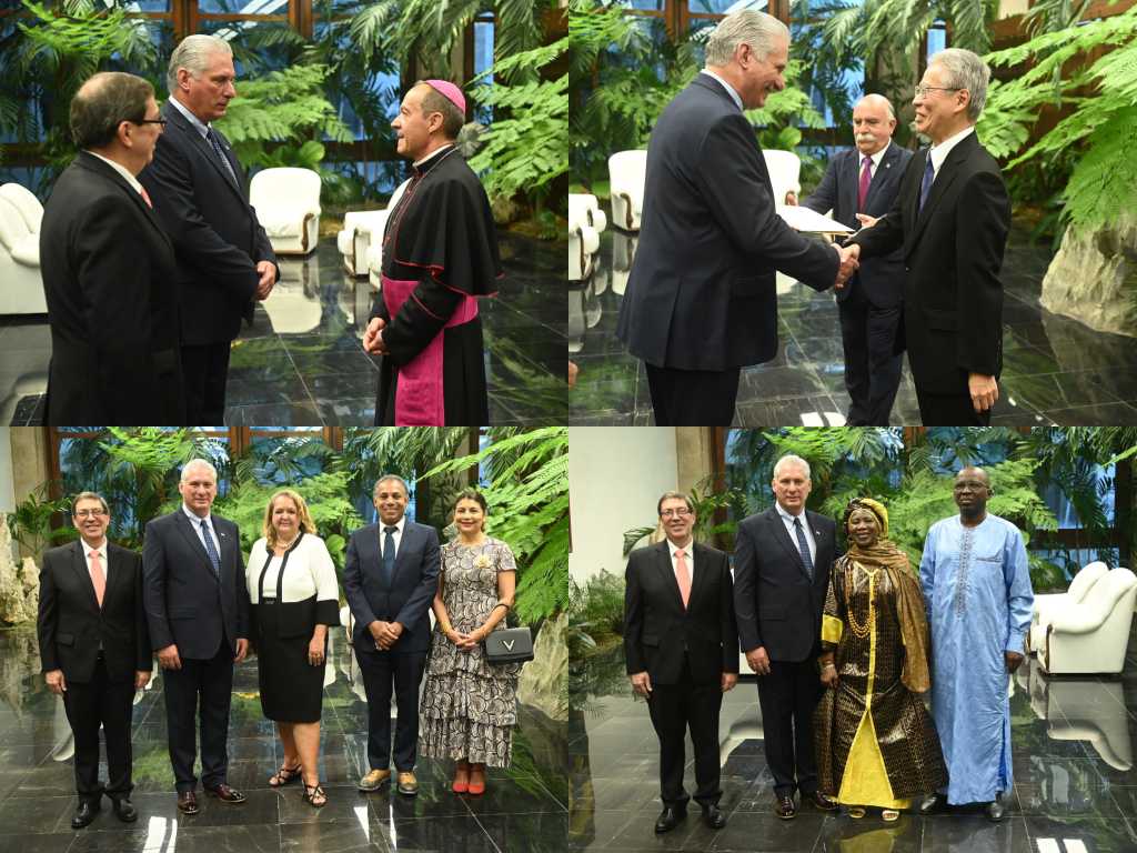 The president received the ambassadors at the Palace of the Revolution, together with Foreign Minister Bruno Rodríguez.