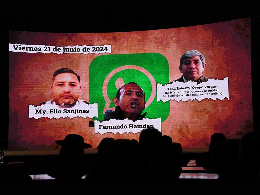 The documentary was presented at the headquarters of the Central Bank of Bolivia in the presence of President Luis Arce; Vice President David Choquehuanca; ministers, national authorities, and leaders of social organizations. It directly implicates the chargé d’affaires of the US Embassy, Debra Hevia.