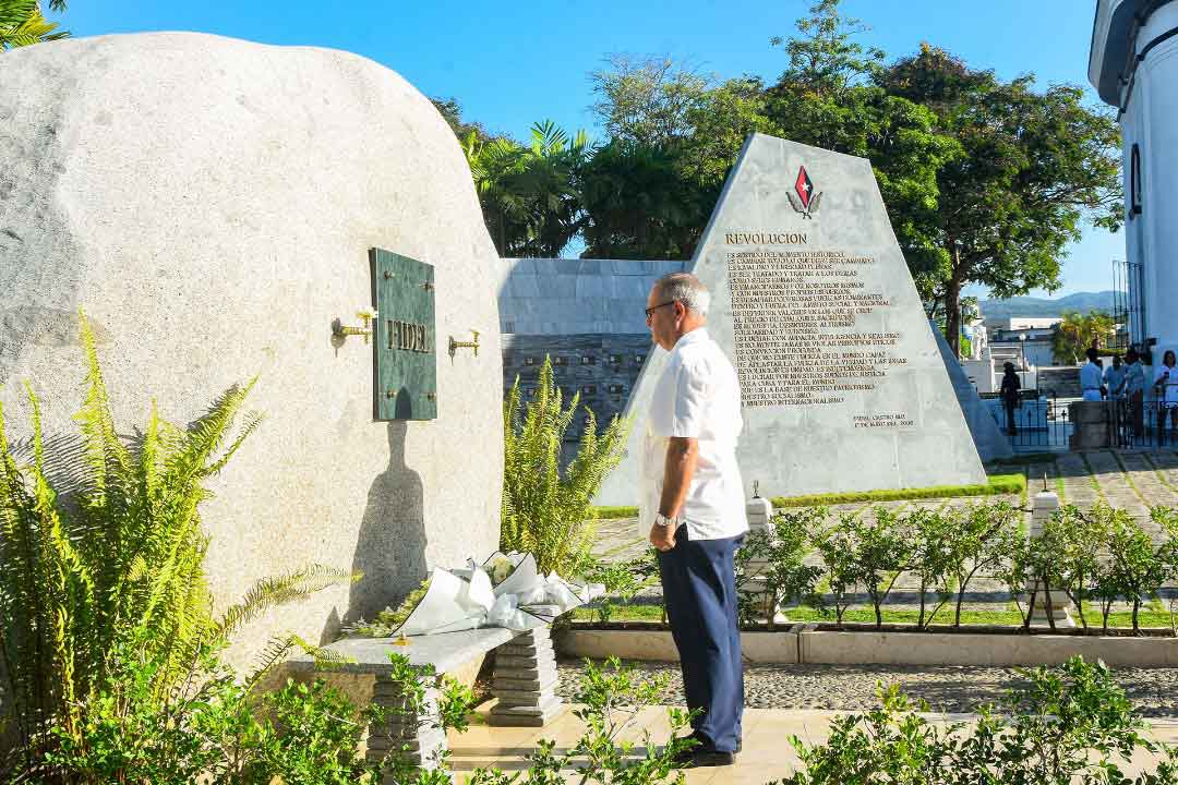 Party Central Committee member and First Secretary in Santiago de Cuba, Beatriz Johnson, and Governor Manuel Falcon placed bouquets of flowers at the foot of the niche embedded in the stone that reads “Fidel.”